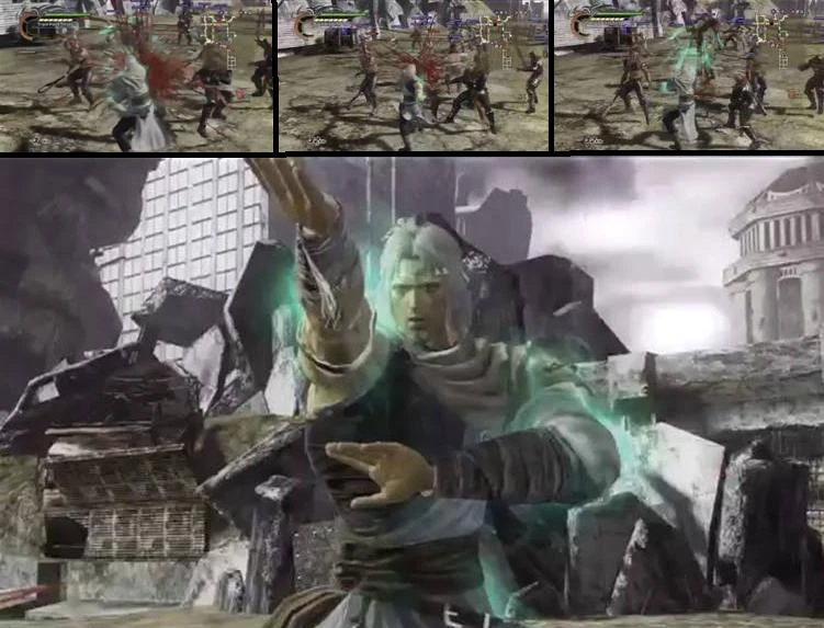 Ujō Danjin Ken (有情断迅拳, Sattva Swift Judgment Fist): Toki hurls several waves of energy in front of him, slicing in his projectile's path. As they near their end, the victims feel as though they're in heaven as their bodies distorts and cracks. Causes several of the Holy Emperor's soldiers to feel euphoria before their heads are split. |