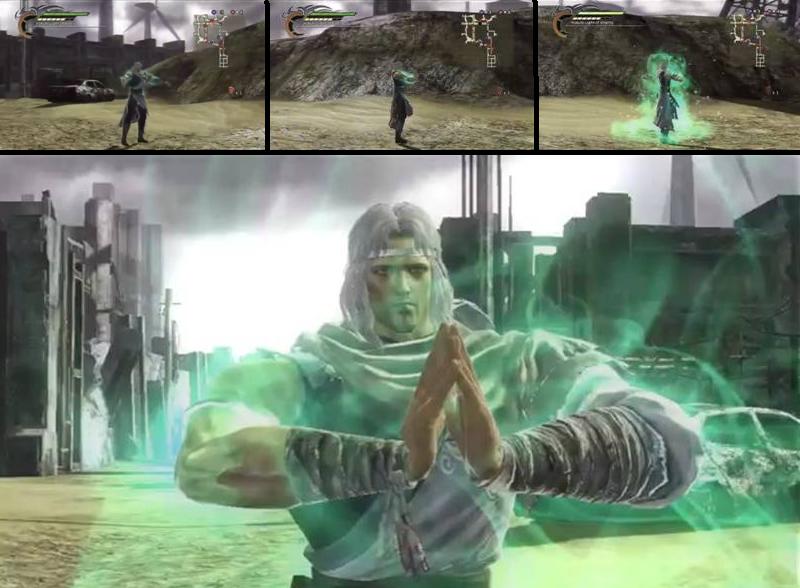 Kiriki Soushi (不離気双掌, Joint Dual Palms): Toki gathers balls of energy in both of hands and then kneels. As he lowers himself, his hands clap together and fire a powerful beam forward |