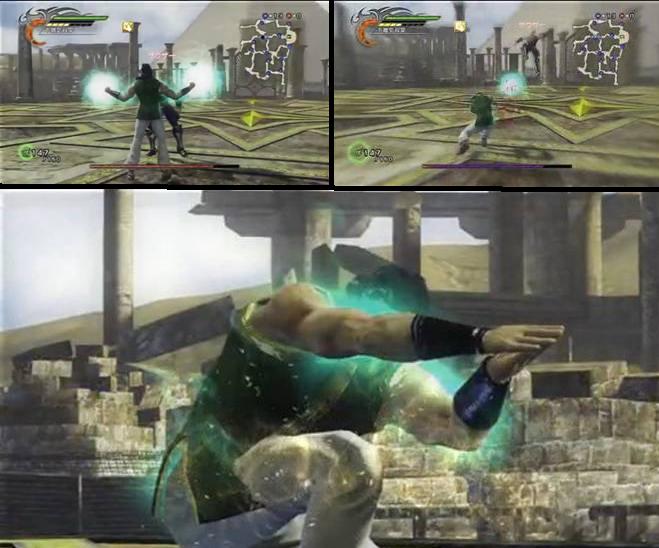 Rago Sho (羅喉掌, Louhou Palm): Toki thrusts his elbow forward to stun his foe. He inhales deeply while creating a multi-hitting ball of energy in front of him. He decisively thrusts his palm forward, sending his opponent flying. |