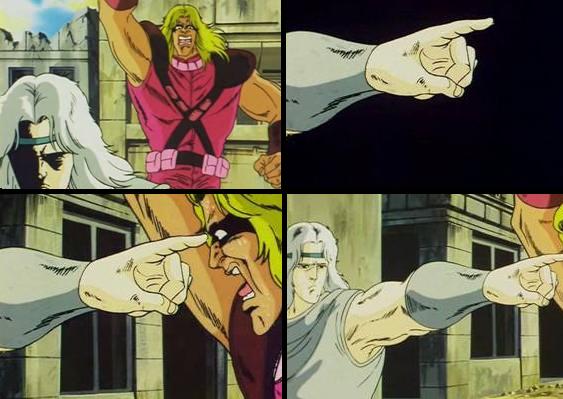 Ujō Hagan Ken (有情破顔拳, Sattva Face Breaking Fist)㊙: Toki emits beams of tōki from his forearms, which hit the pressure point Kensei. Contorts bodies with pleasure before death. |